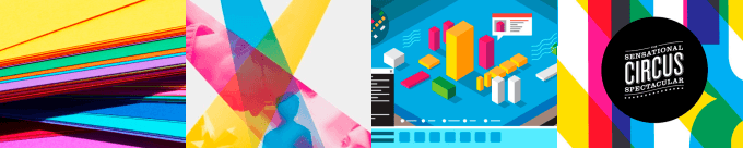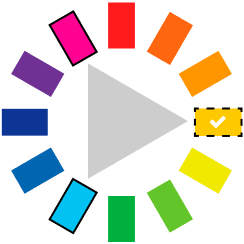 A triadic harmony is used for its 'pop' factor, based on three colours evenly spaced on the wheel.
