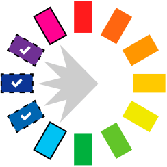 An analogous harmony is made of colours between two colours. It can create a combination of edge and serenity.