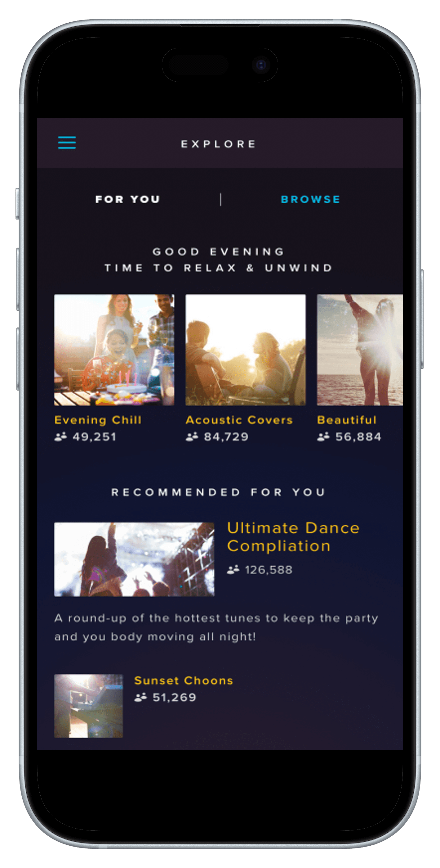 Album covers were presented as a vinyl, with a radial-grooved overlay used to simulate a realistic appearance. Unfortunately, I haven't been able to export a video with the groove details looking obvious. Works well in the app though.