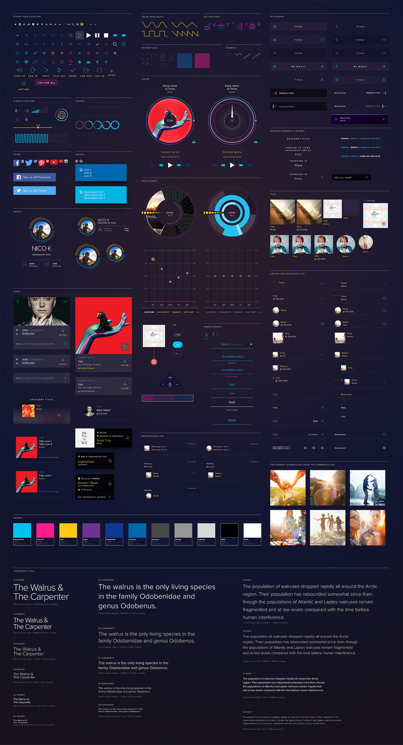 Proxima Nova was chosen as the choice of font for it's geometric appearance, flexibility and well-balanced kerning.